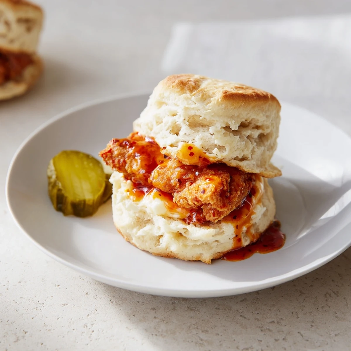 One Saturday, a group of friends wandered in after a hike dusty and starved, and I offered to whip up these biscuits& We ended up eating outside, stacking biscuits with spicy-sweet chicken and passing the jar of hot honey from hand to hand& There was plenty of laughter at who piled on the most pickles, and not a crumb left for later& Since then this recipe has become the official request whenever anyone smells hot oil in my kitchen&